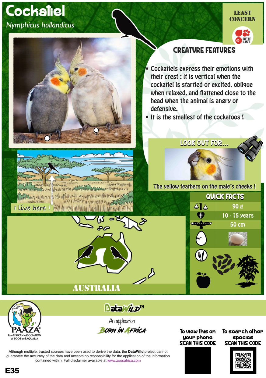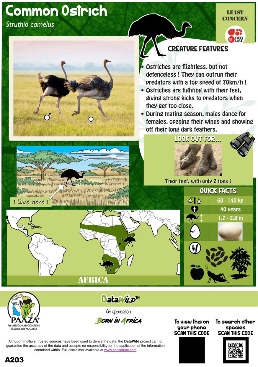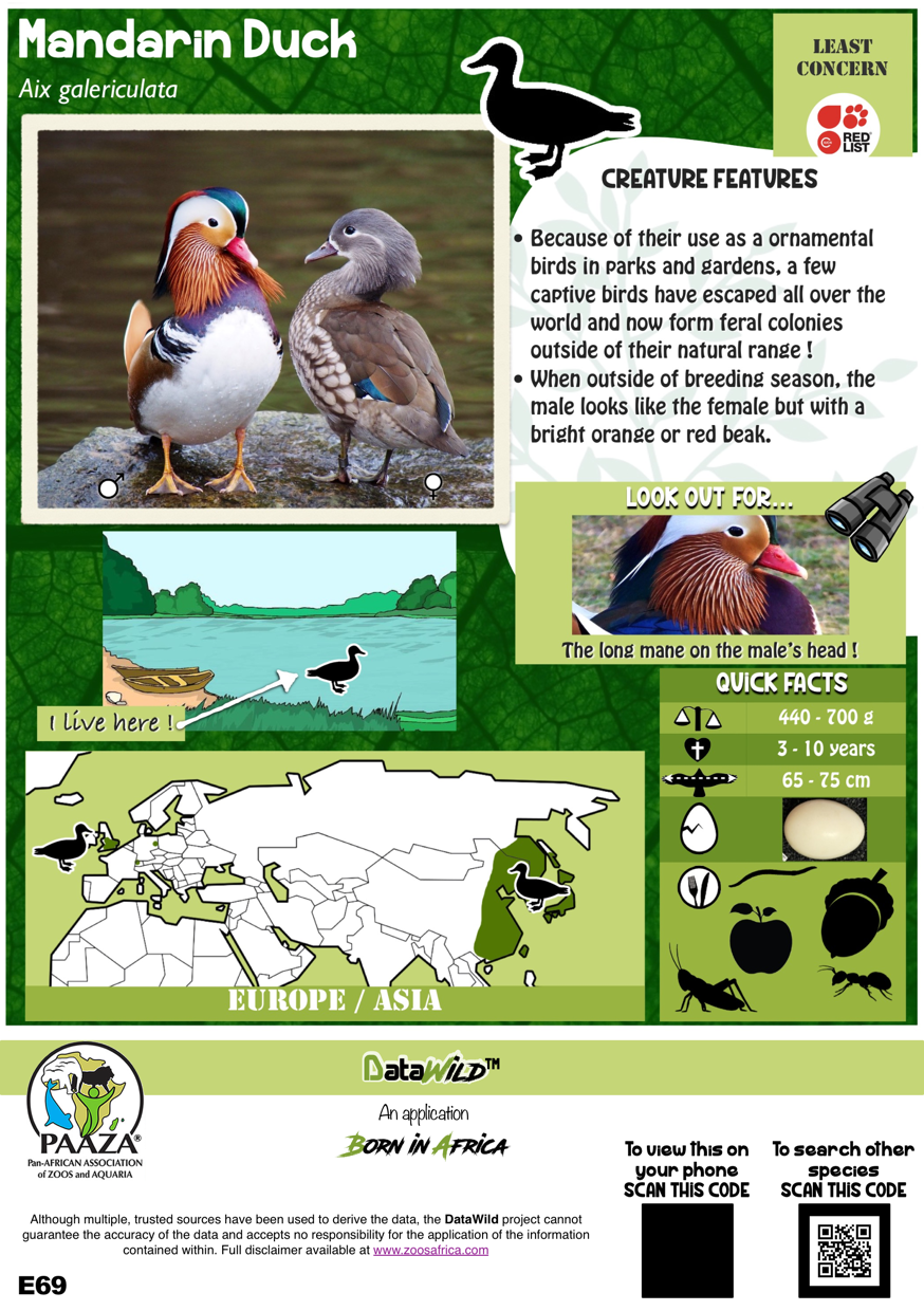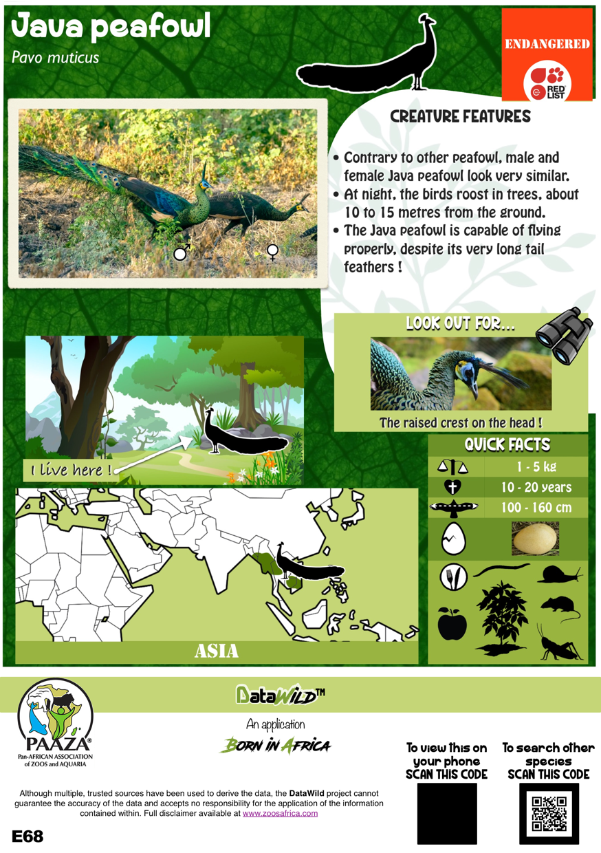 DataWild® is a free to use database on African animal species. It also includes exotic species commonly found in human care in Africa. It is aimed to contain information about most vertebrates, including mammals, birds and reptiles.